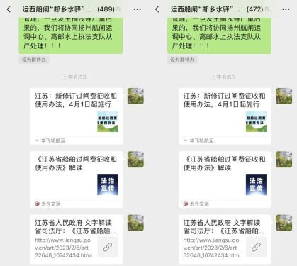 为进一步规范船舶过闸费征收和使用管理,保障航道畅通和船舶通行安全,扬州港航通过“线上+线下”的方式,多举措开展宣贯活动。