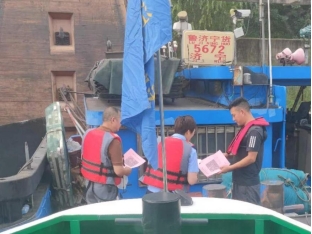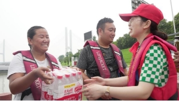 无锡市锡山区港航中心联合海事部门工作人员,在停泊区向船民发放矿泉水,提醒船民注意防暑降温,确保身体健康。