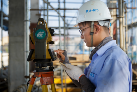 常州德胜河航道魏村枢纽工程施工人员进行测量。