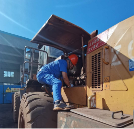 常州录安洲码头装载机维修现场,维修人员全力抢修。