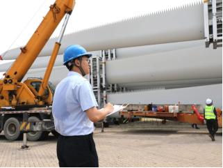 南京港机重工公司的机械加工车间里,现场质检员对即将出口的振石项目产品结构件进行质量检验。