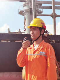 镇江港4号泊位生产现场,现场调度员指挥门机司机生产作业,保障海轮装卸。