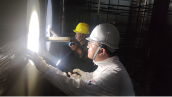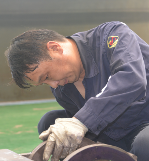 在漆黑闷热的船舱里,南通市交通综合执法支队验船师打着手电筒慢慢爬行开展船舶检验检测。