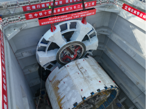 1月22日,在世界最长公路水下盾构隧道——海太长江隧道南通海门侧施工现场,涂装着蔚蓝色巨浪的“江海号”盾构机刀盘在1600吨和400吨履带吊双机配合下,完成“空中转体”后缓缓下移,与始发井中的主体精准对接。这标志着我国自主研发的开挖直径达16.64米的超大直径盾构机的重大部件组装基本完成,即将进入始发调试阶段。