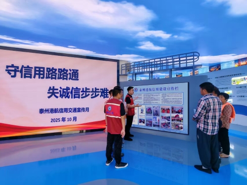 金秋十月,泰州市港航事业发展中心围绕“诚实守信,一路畅行”主题,在周山河船闸和口岸船闸开展“信用交通宣传月”活动。活动深度融合“信易航”实践成果,创新邀请守信船主走进周山河美丽船闸,同时在党员组织生活馆举办信用案例分享会,以“沉浸式体验+故事化分享”让信用理念深入人心。