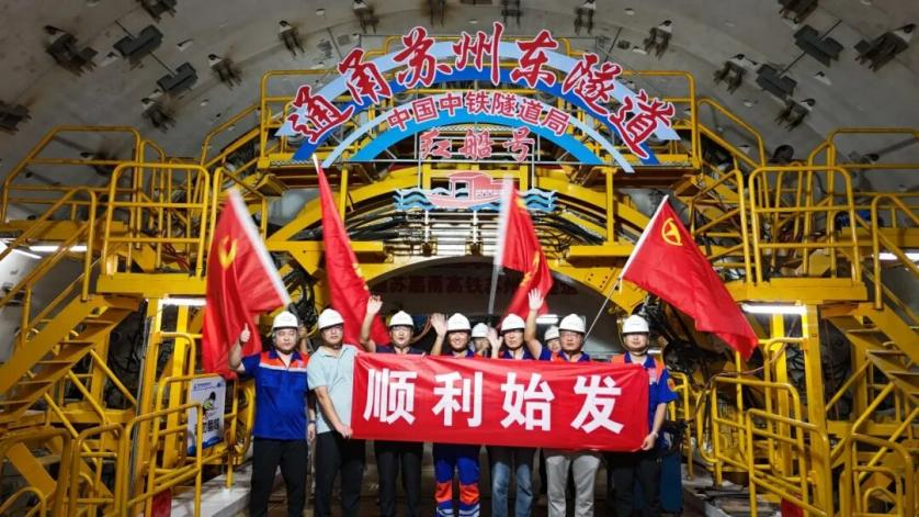 近日,在苏州市吴中区甪直镇5号竖井内,随着“红船号”盾构机刀盘开始缓缓转动并推进,由中铁隧道局施工的通苏嘉甬高铁苏州东隧道盾构区间正式开启掘进之旅。