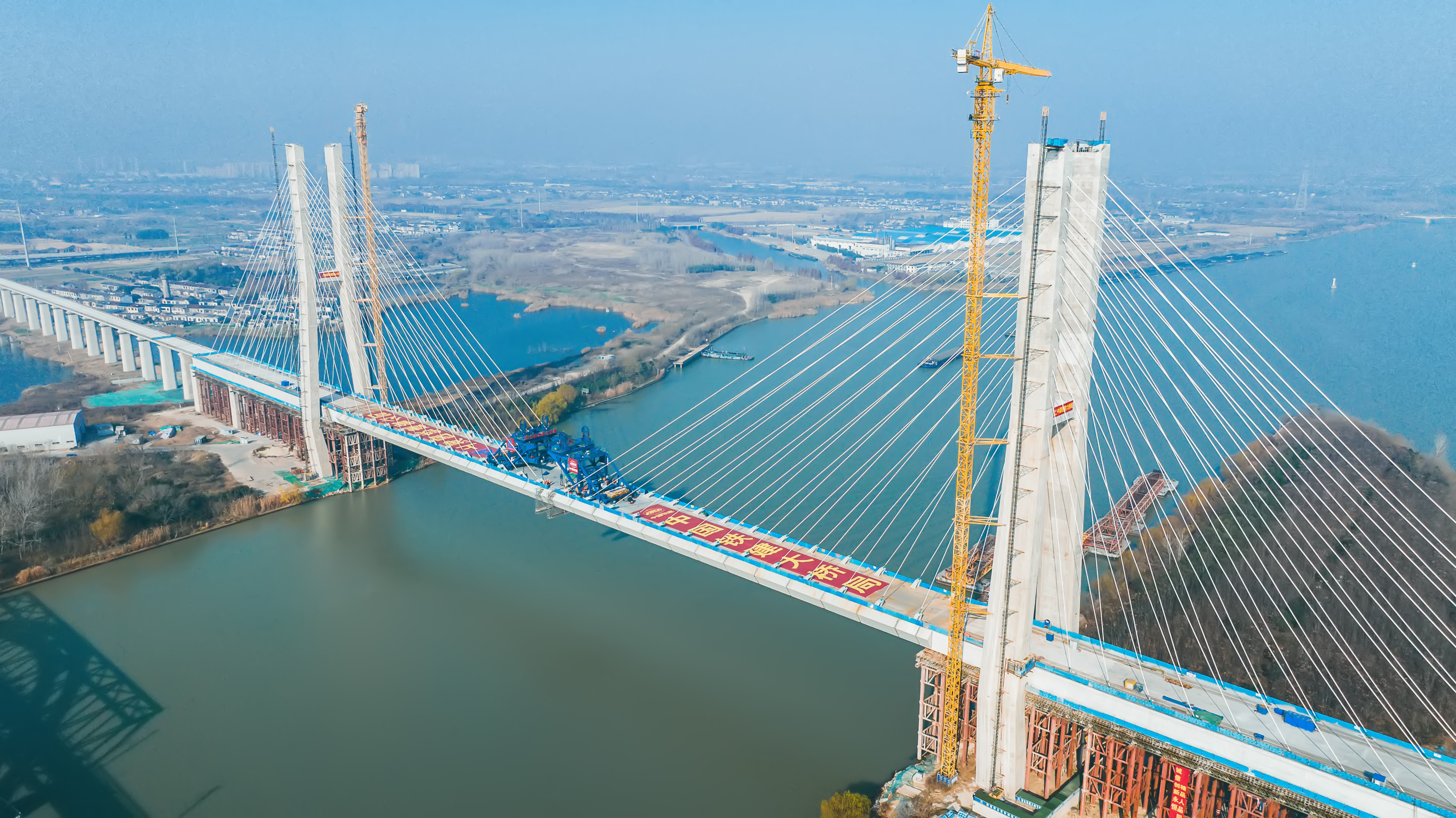 近日,北沿江高铁扬州段跨京杭运河斜拉桥合龙。至此,北沿江高铁扬州段境内所有桥梁实现合龙。