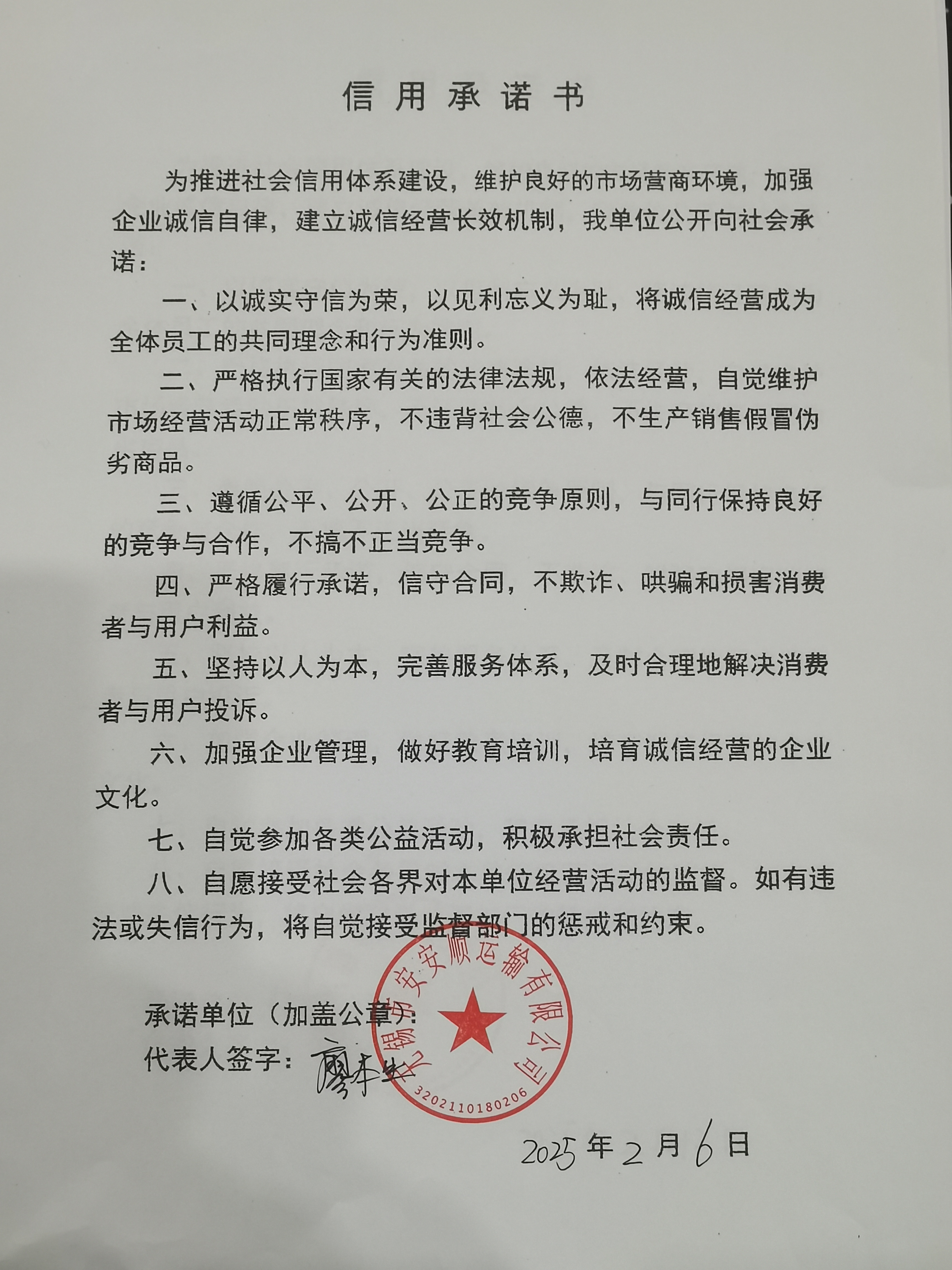 无锡交通信用承诺-无锡市安安顺运输有限公司