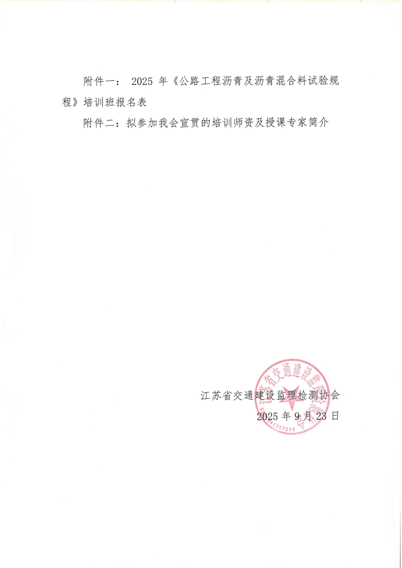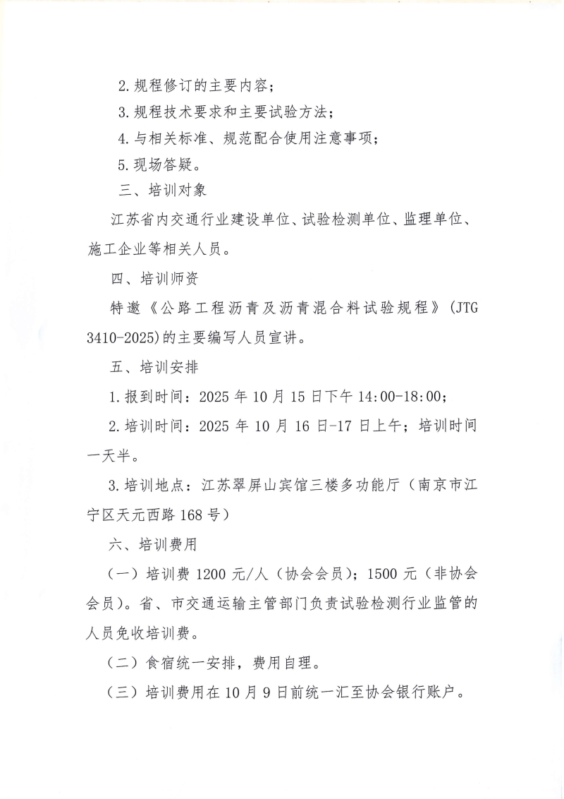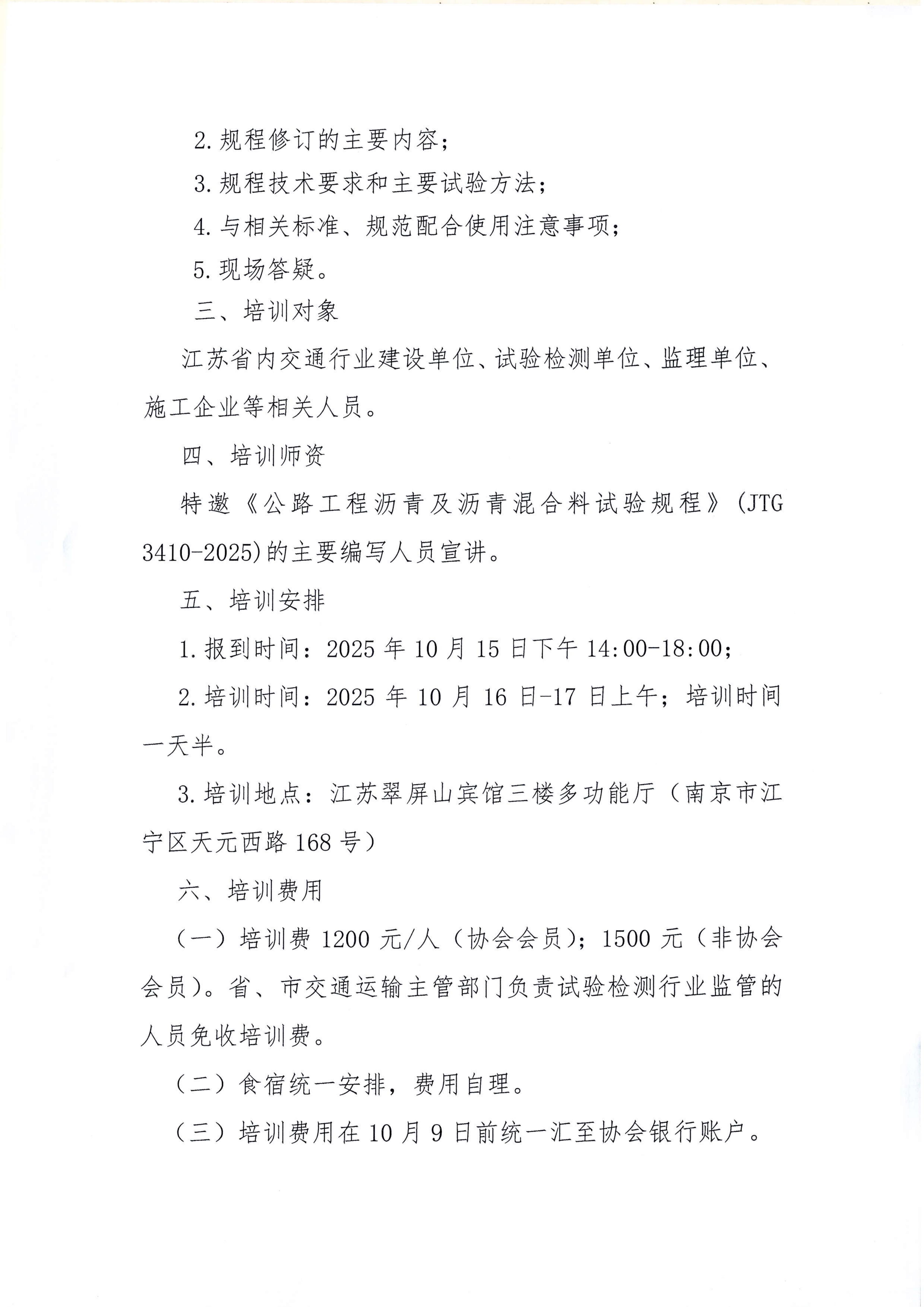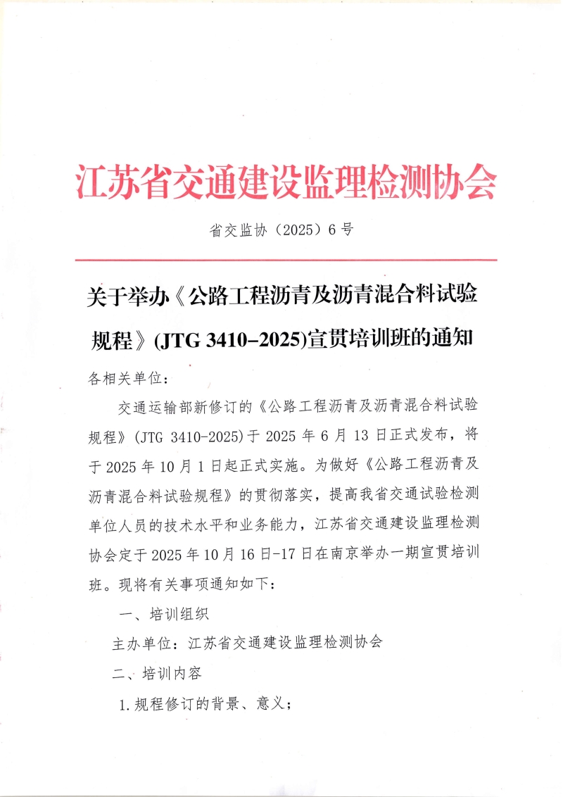 关于举办《公路工程沥青及沥青混合料试验规程》(JTG3410-2025)宣贯培训班的通知