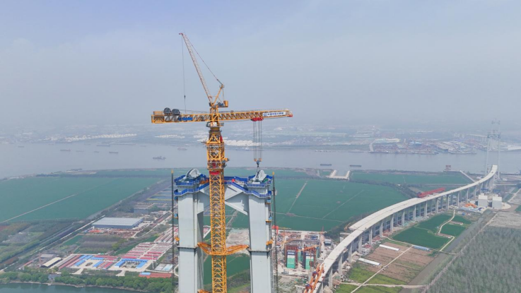 4月5日,张靖皋长江大桥南航道桥北主塔主索鞍全部吊装完成,标志着世界首创的“自行走索鞍”在该超级工程中成功安装,为后续主缆架设奠定了基础。